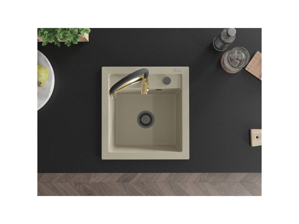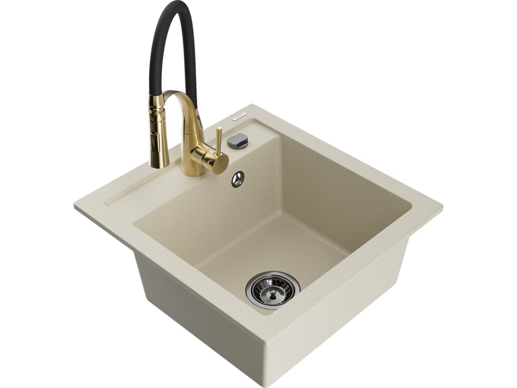 Granitový drez Mexen Vito s 1 misou a kuchynskou batériou Aster, béžový - 6503-69-73450-57-B
