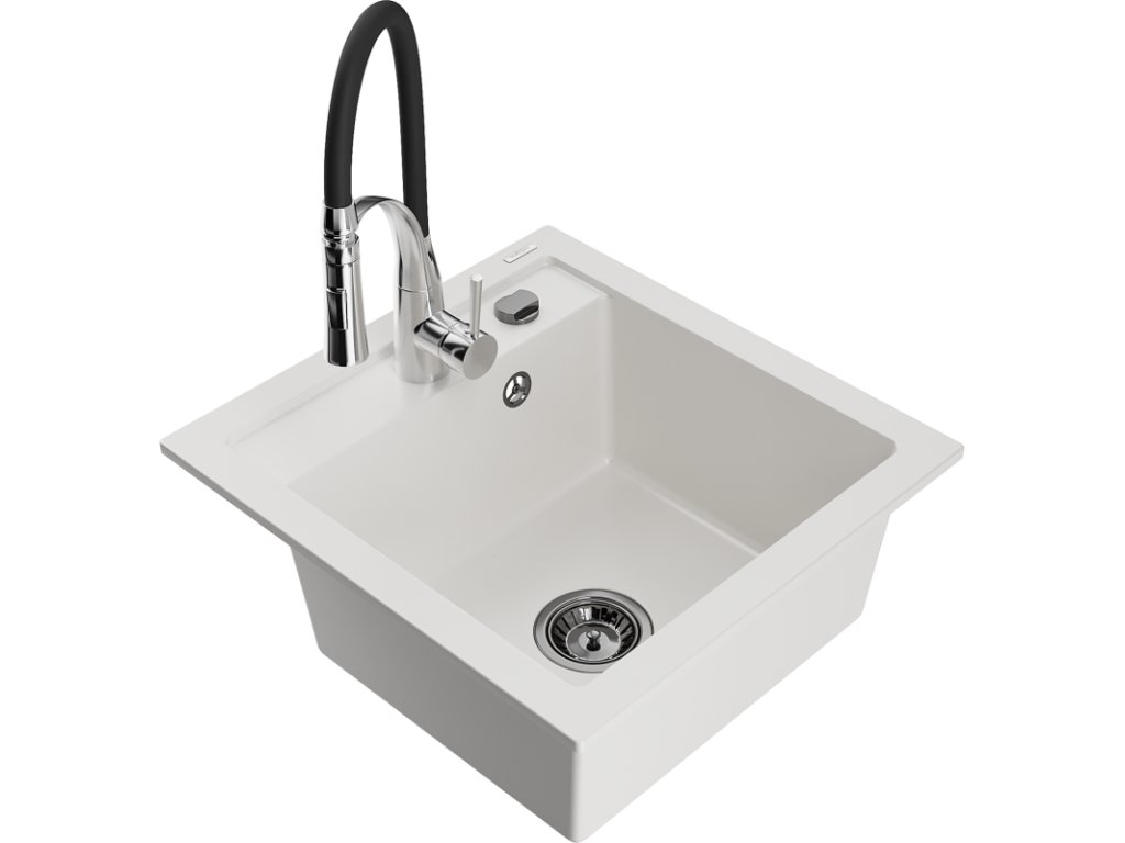 Granitový drez Mexen Vito s 1 misou a kuchynskou batériou Aster, biely - 6503-20-73450-07-B