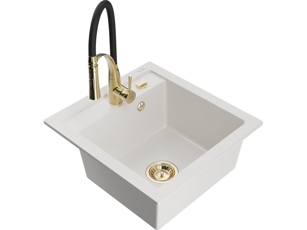 Granitový drez Mexen Vito s 1 misou a kuchynskou batériou Aster, biely - 6503-20-73450-57-G