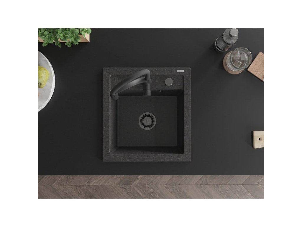 Granitový drez Mexen Vito s 1 misou a kuchynskou batériou Aster, čierna škvrnitá - 6503-76-73450-70-B