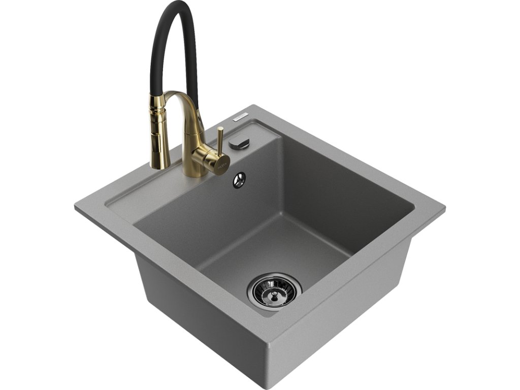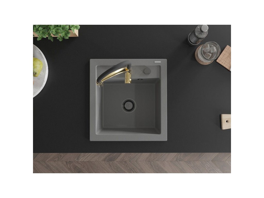 Granitový drez Mexen Vito s 1 misou a kuchynskou batériou Aster, sivý - 6503-71-73450-57-B