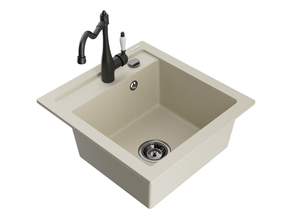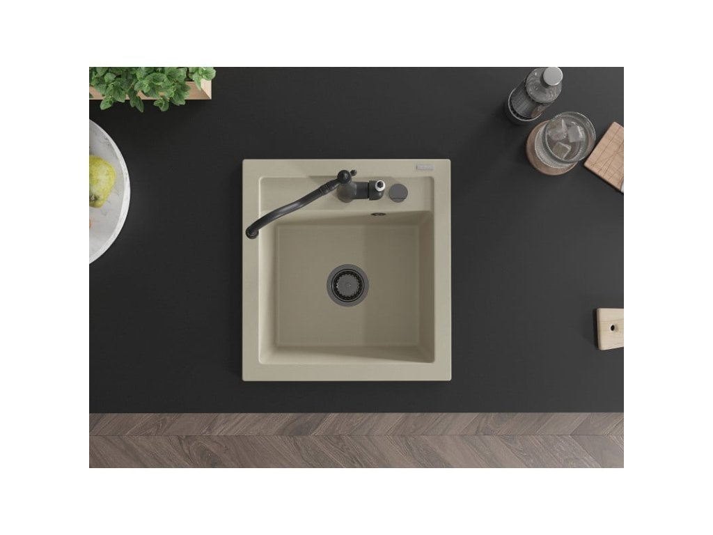 Granitový drez Mexen Vito s 1 misou a kuchynskou batériou Carla, béžový - 6503-69-670700-70