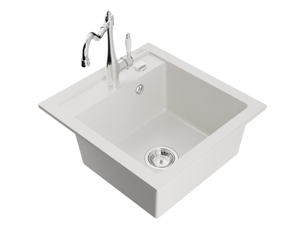 Granitový drez Mexen Vito s 1 misou a kuchynskou batériou Carla, biely - 6503-20-670700-00