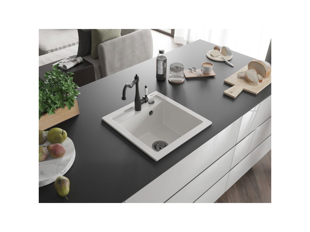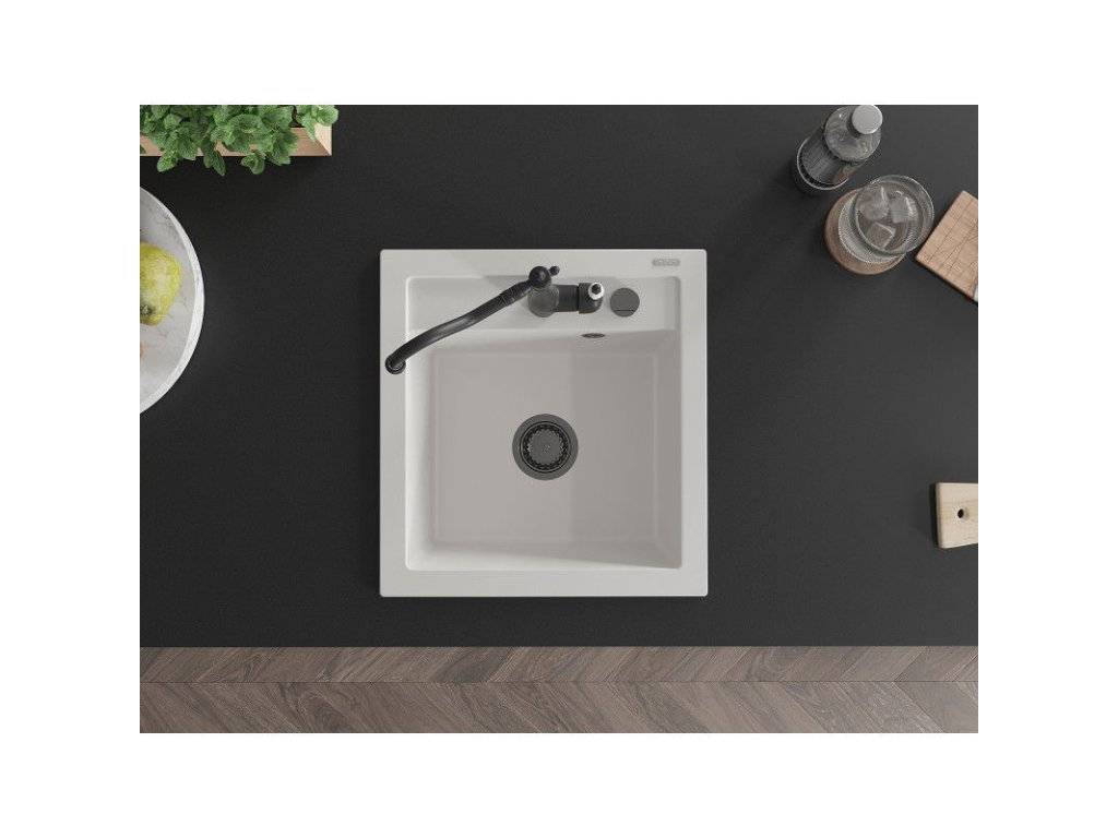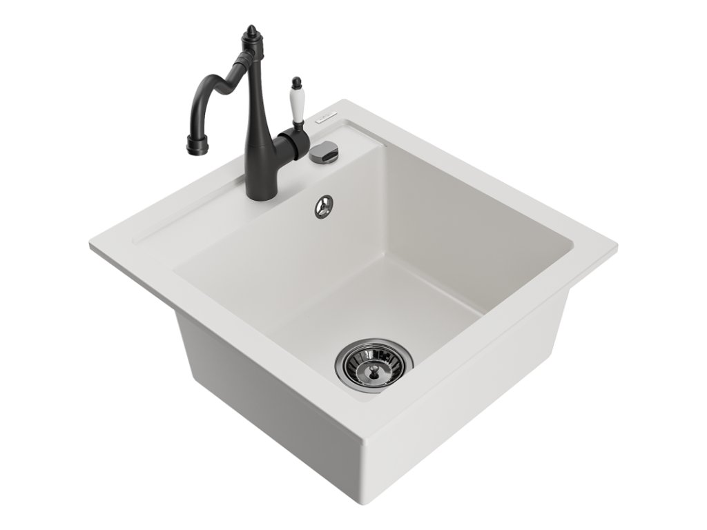 Granitový drez Mexen Vito s 1 misou a kuchynskou batériou Carla, biely - 6503-20-670700-70