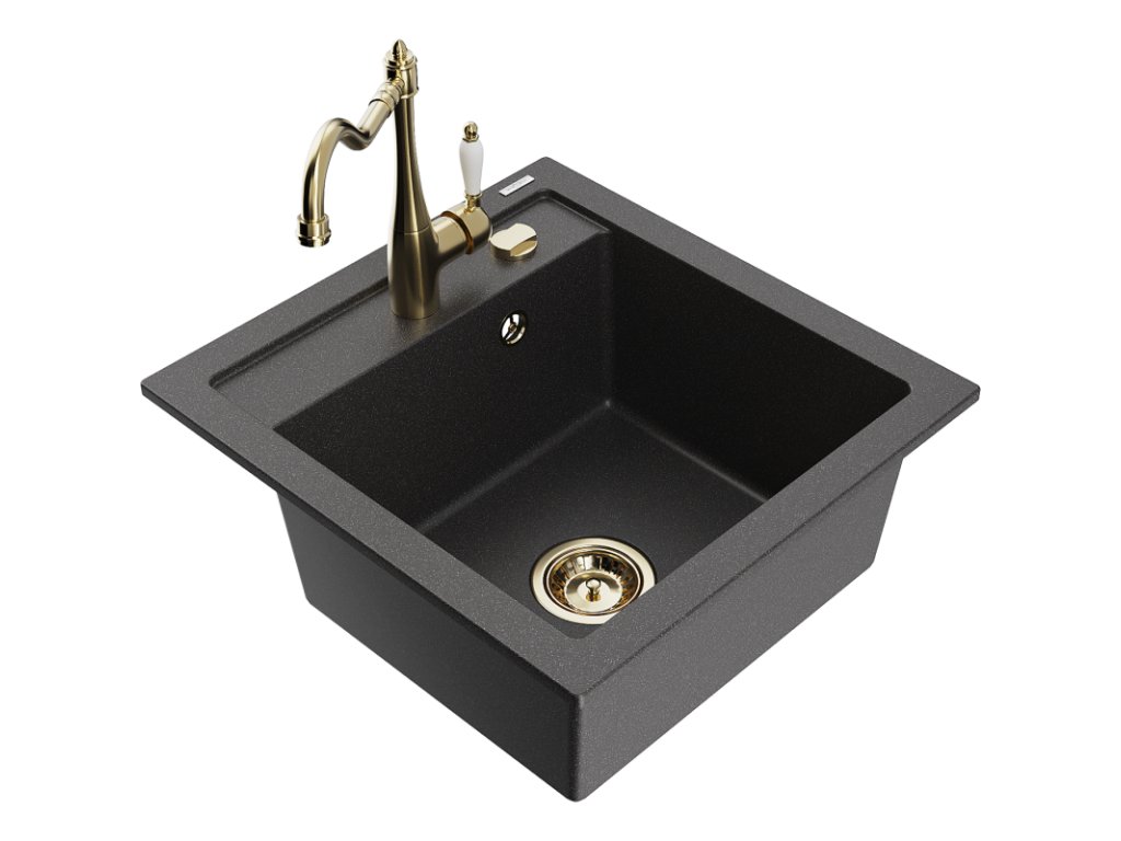 Granitový drez Mexen Vito s 1 misou a kuchynskou batériou Carla, čierna škvrnitá - 6503-76-670700-50