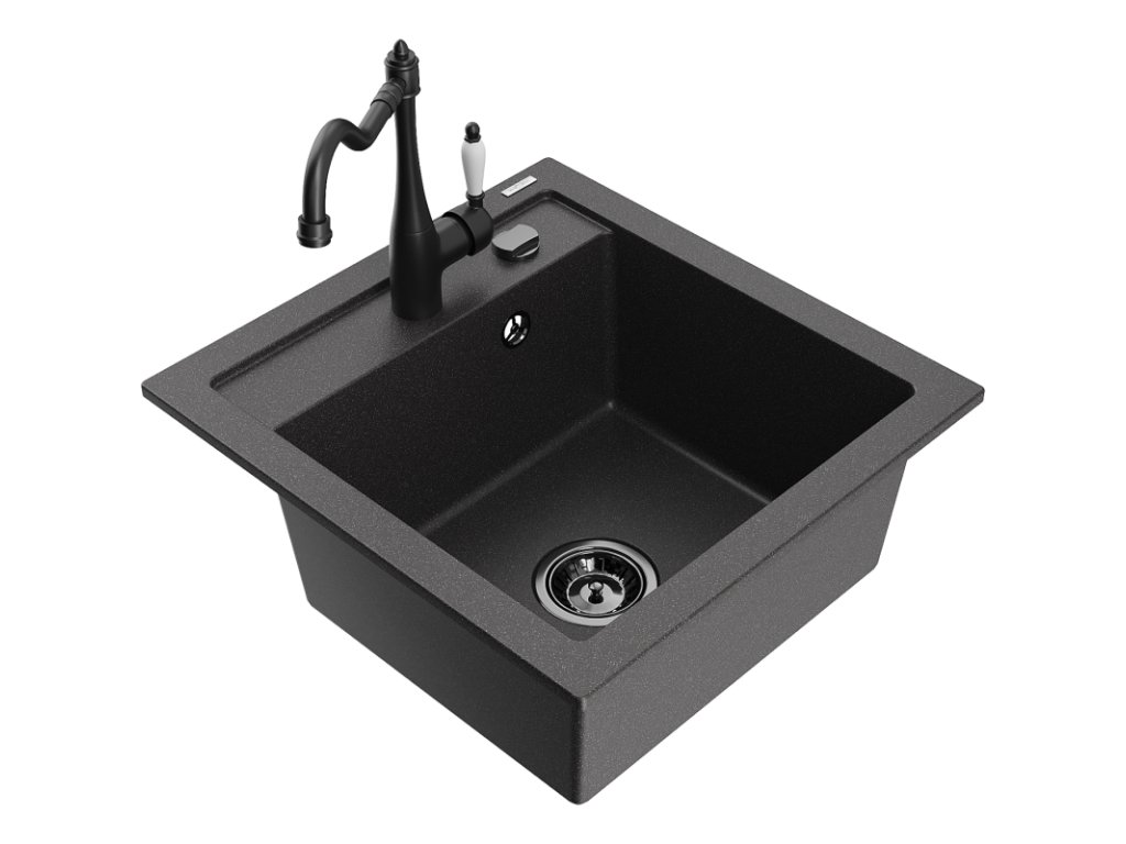 Granitový drez Mexen Vito s 1 misou a kuchynskou batériou Carla, čierna škvrnitá - 6503-76-670700-70-B