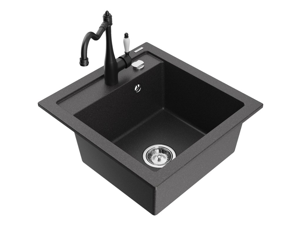 Granitový drez Mexen Vito s 1 misou a kuchynskou batériou Carla, čierna škvrnitá - 6503-76-670700-70