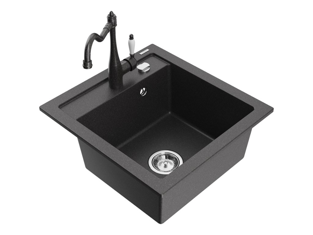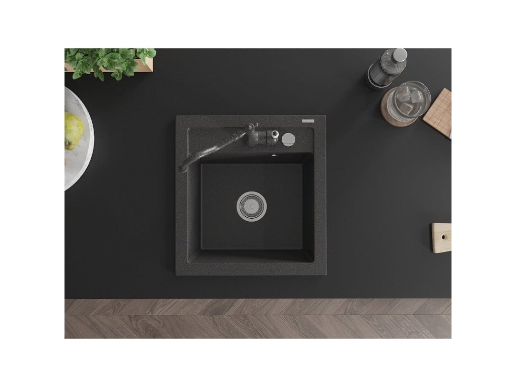 Granitový drez Mexen Vito s 1 misou a kuchynskou batériou Carla, čierna škvrnitá - 6503-76-670700-76
