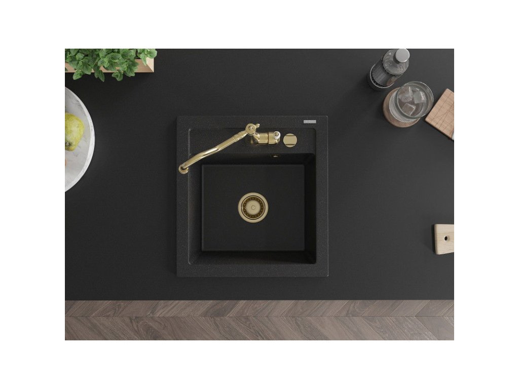 Granitový drez Mexen Vito s 1 misou a kuchynskou batériou Carla, čierna/strieborná metalíza - 6503-73-670700-50