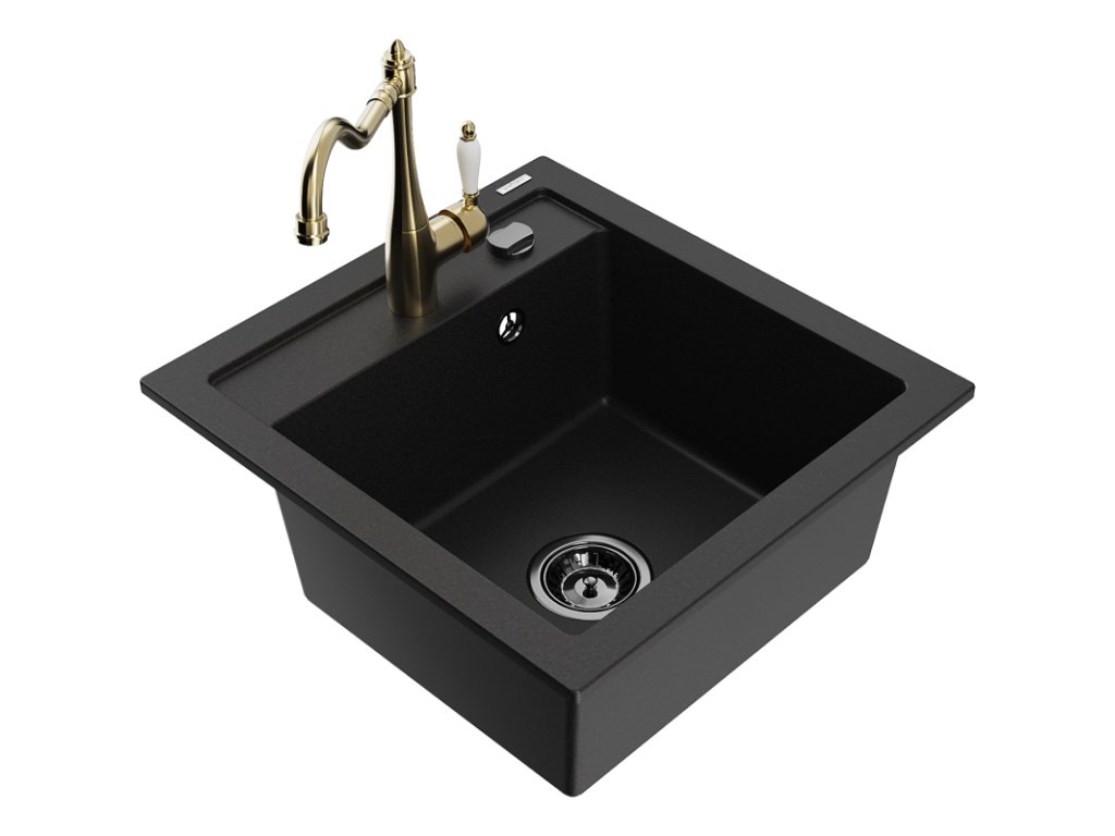 Granitový drez Mexen Vito s 1 misou a kuchynskou batériou Carla, čierny - 6503-77-670700-50-B