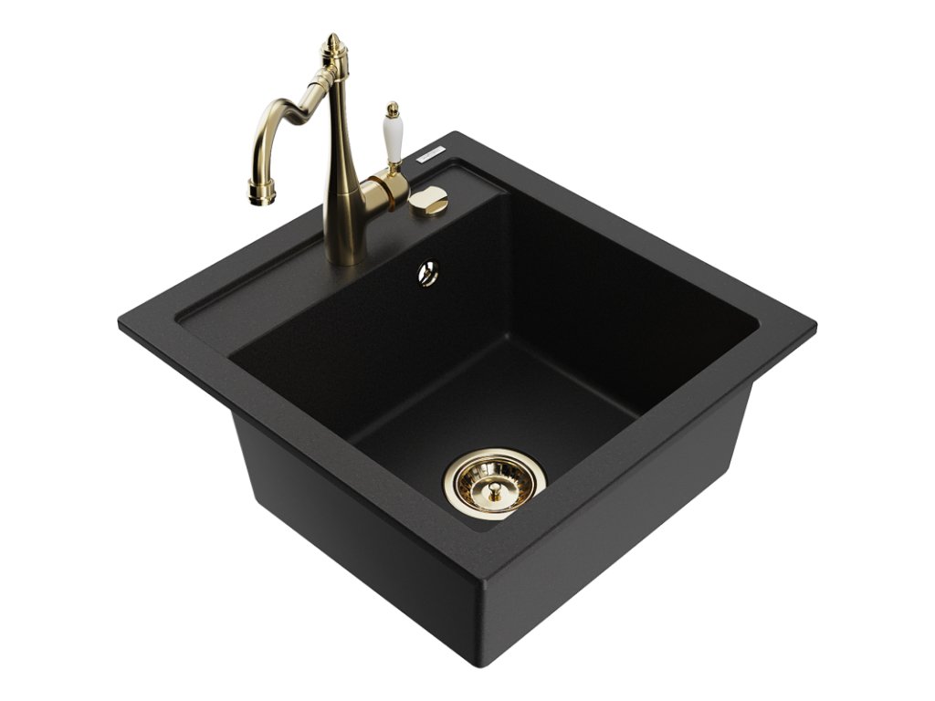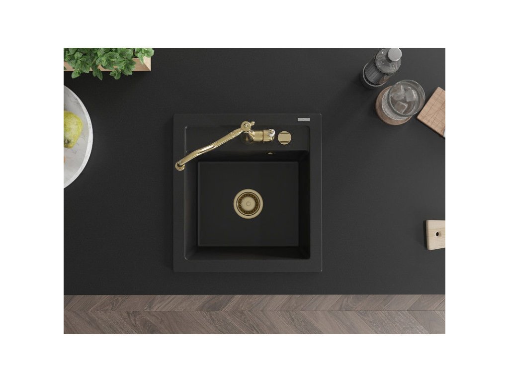 Granitový drez Mexen Vito s 1 misou a kuchynskou batériou Carla, čierny - 6503-77-670700-50