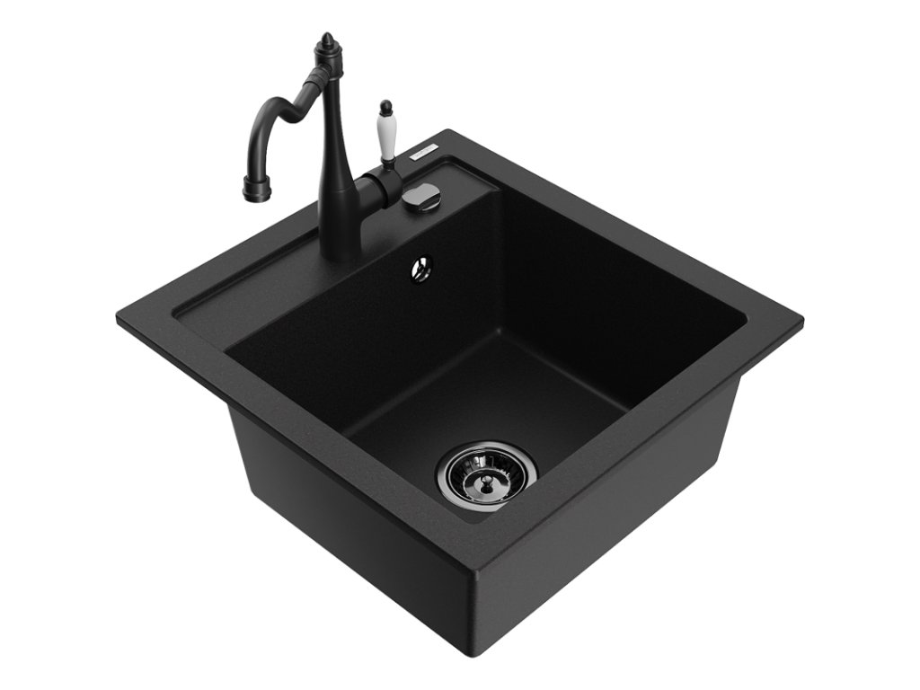 Granitový drez Mexen Vito s 1 misou a kuchynskou batériou Carla, čierny - 6503-77-670700-70-B