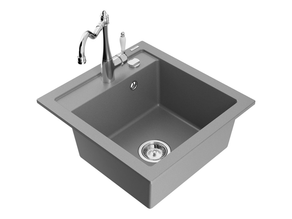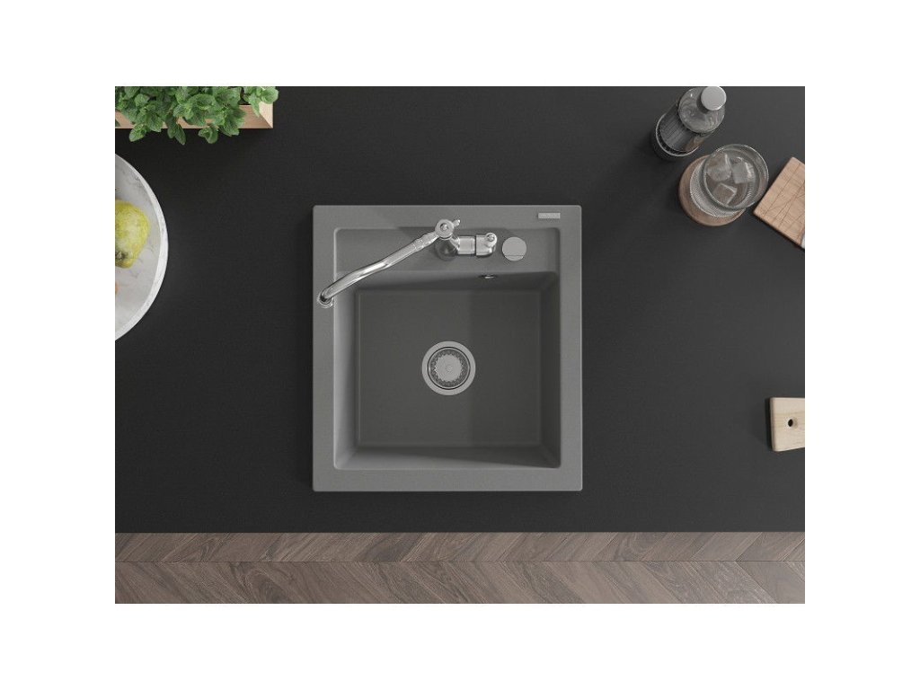 Granitový drez Mexen Vito s 1 misou a kuchynskou batériou Carla, sivý - 6503-71-670700-00