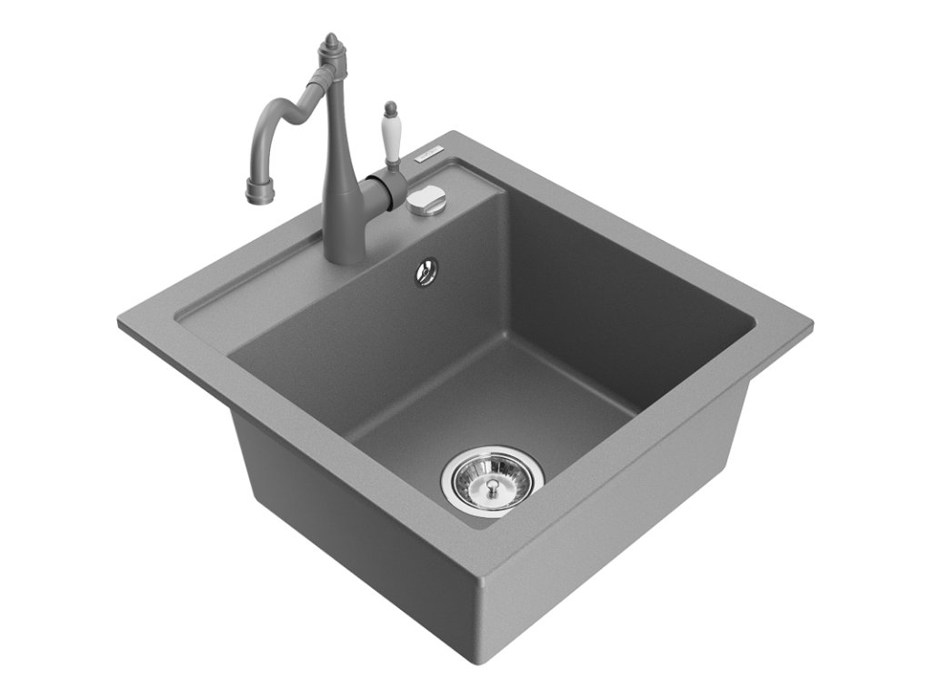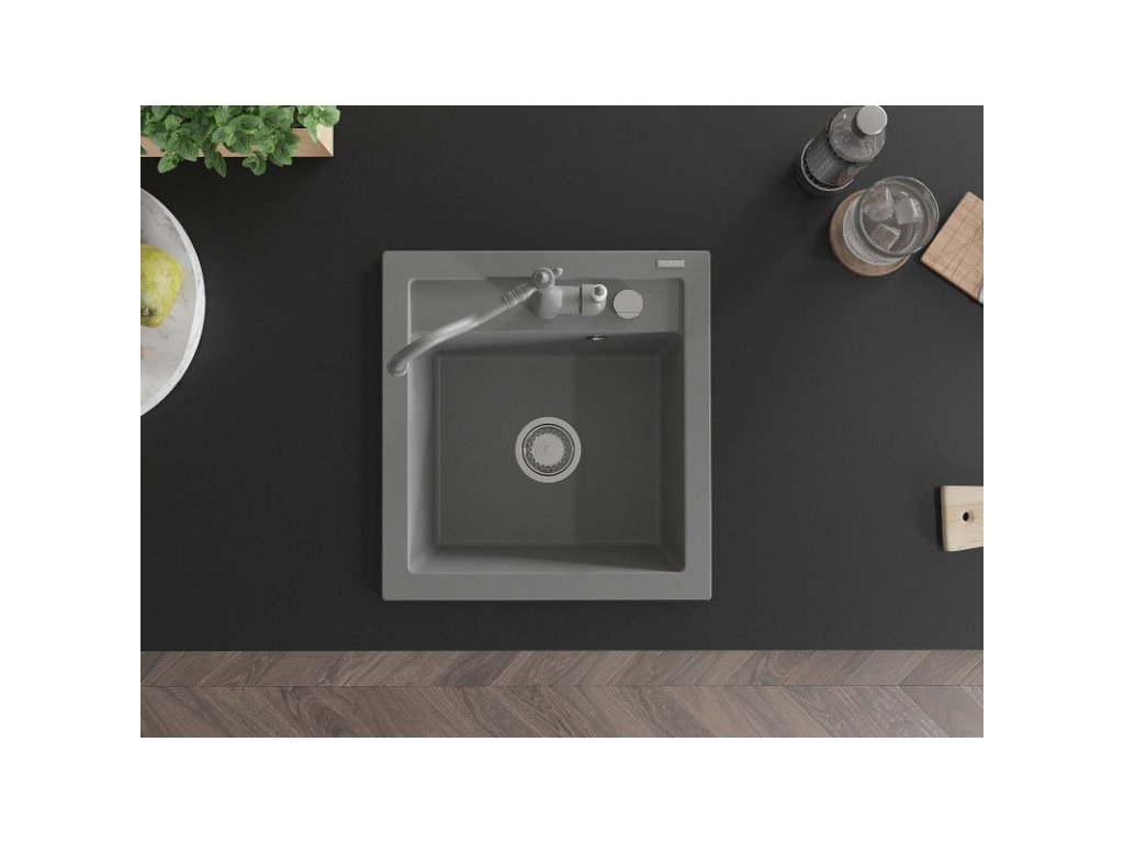 Granitový drez Mexen Vito s 1 misou a kuchynskou batériou Carla, sivý - 6503-71-670700-71