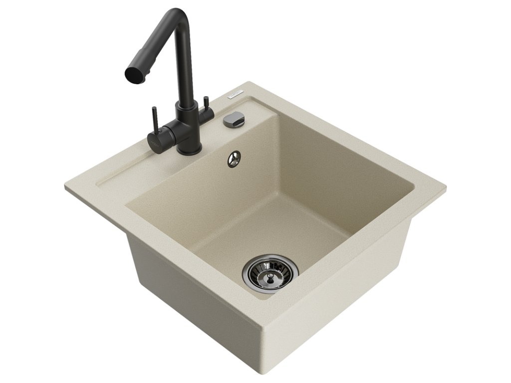 Granitový drez Mexen Vito s 1 misou a kuchynskou batériou Duero, béžový - 6503-69-671600-70