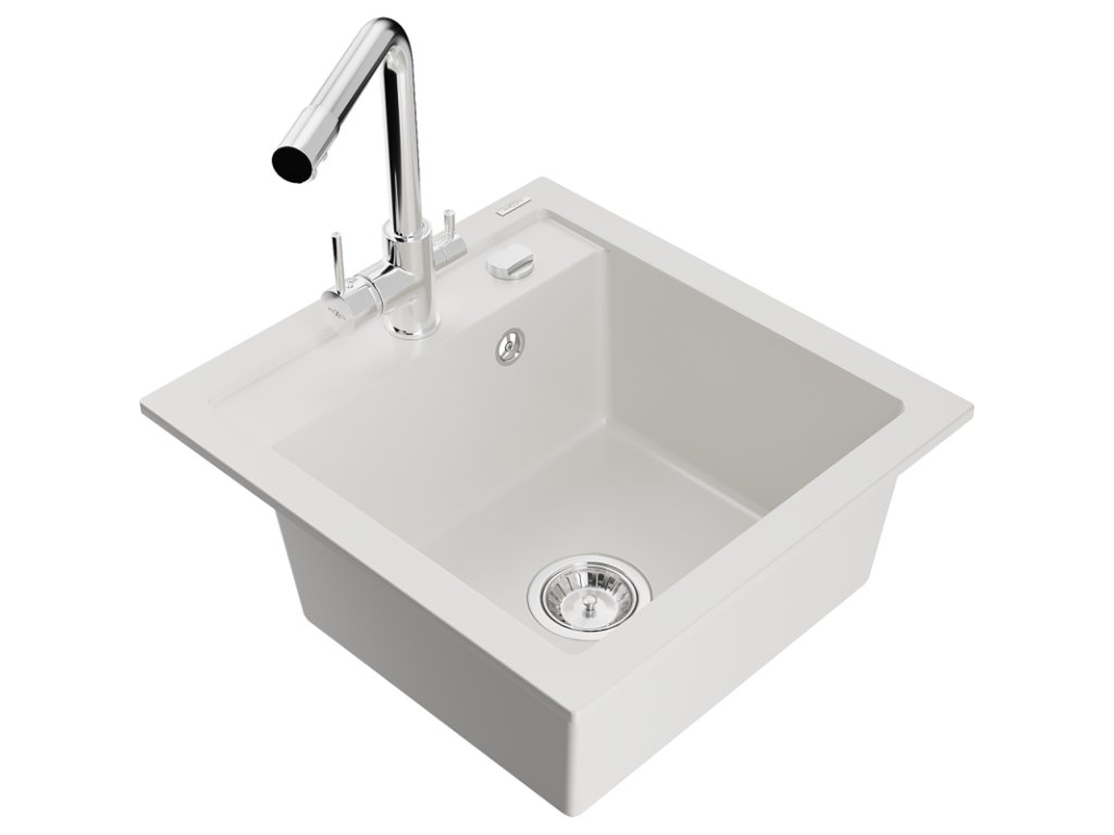 Granitový drez Mexen Vito s 1 misou a kuchynskou batériou Duero, biely - 6503-20-671600-00
