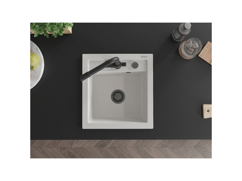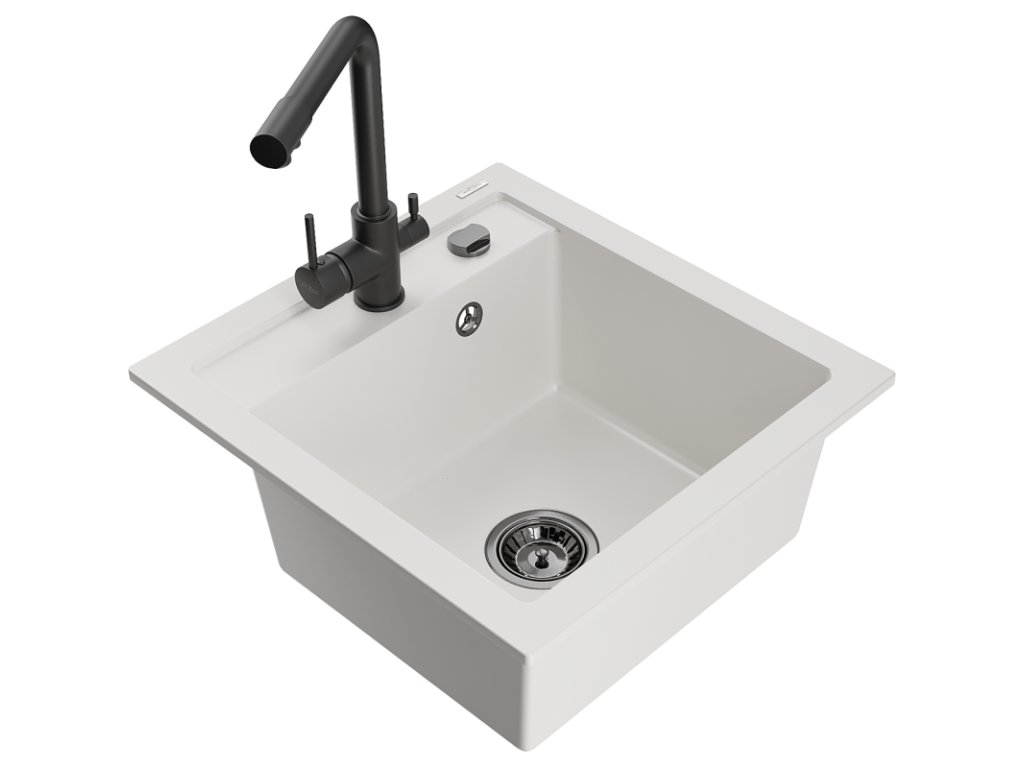 Granitový drez Mexen Vito s 1 misou a kuchynskou batériou Duero, biely - 6503-20-671600-70