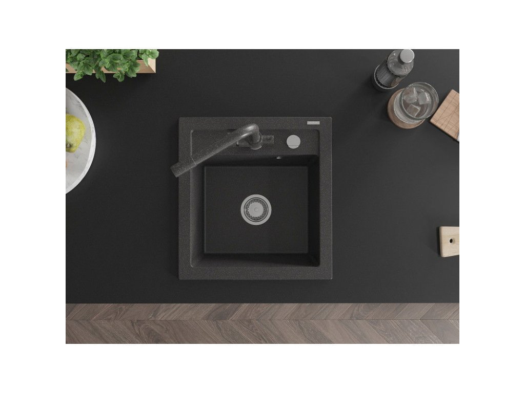 Granitový drez Mexen Vito s 1 misou a kuchynskou batériou Duero, čierna škvrnitá - 6503-76-671600-76