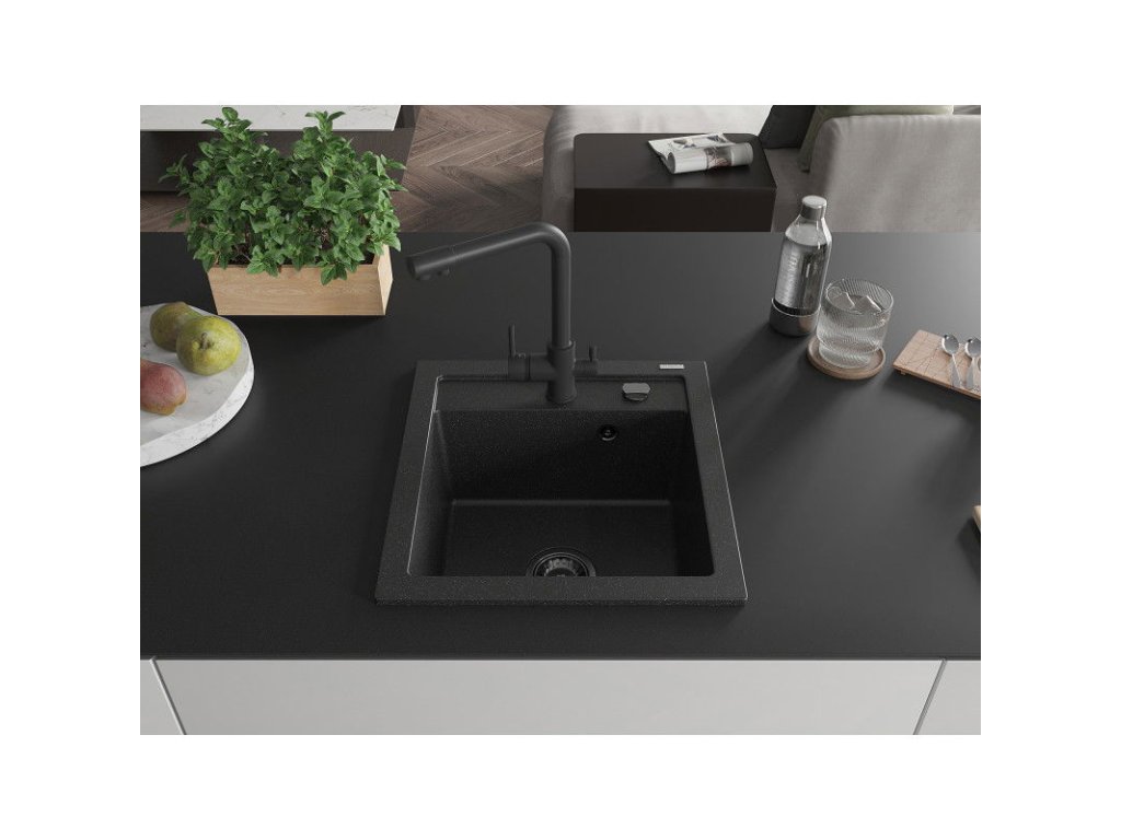 Granitový drez Mexen Vito s 1 misou a kuchynskou batériou Duero, čierna/strieborná metalíza - 6503-73-671600-70-B