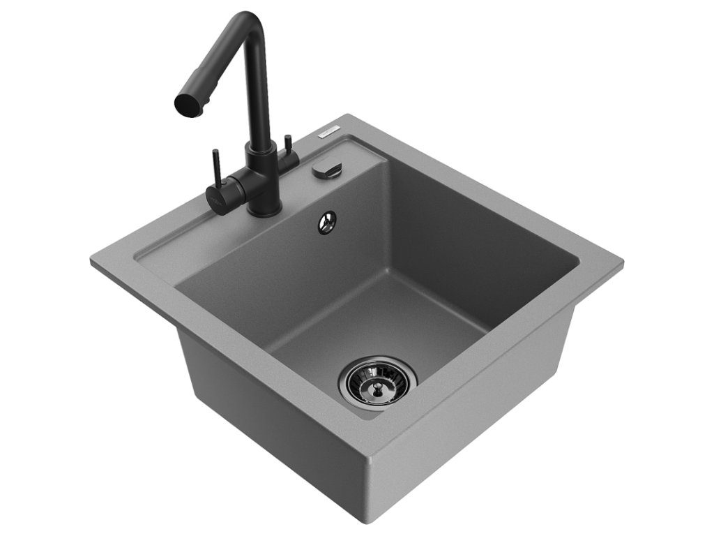 Granitový drez Mexen Vito s 1 misou a kuchynskou batériou Duero, sivý - 6503-71-671600-70-B
