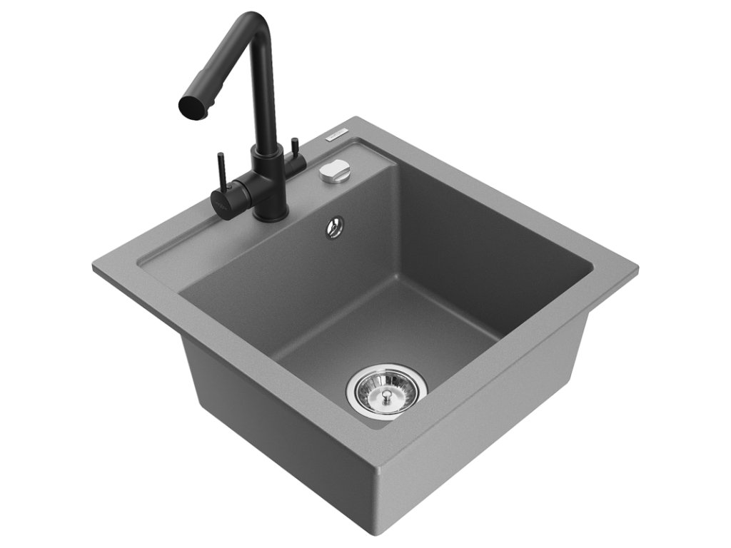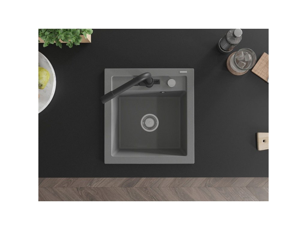 Granitový drez Mexen Vito s 1 misou a kuchynskou batériou Duero, sivý - 6503-71-671600-70