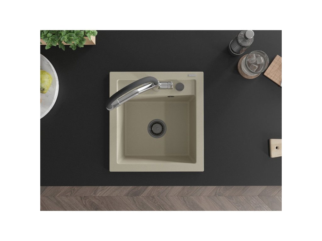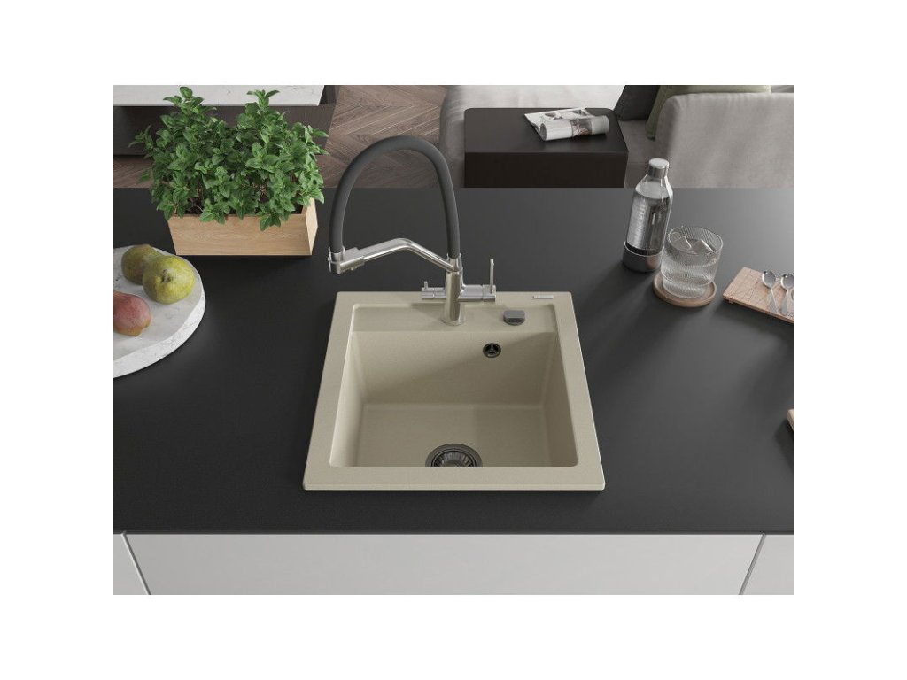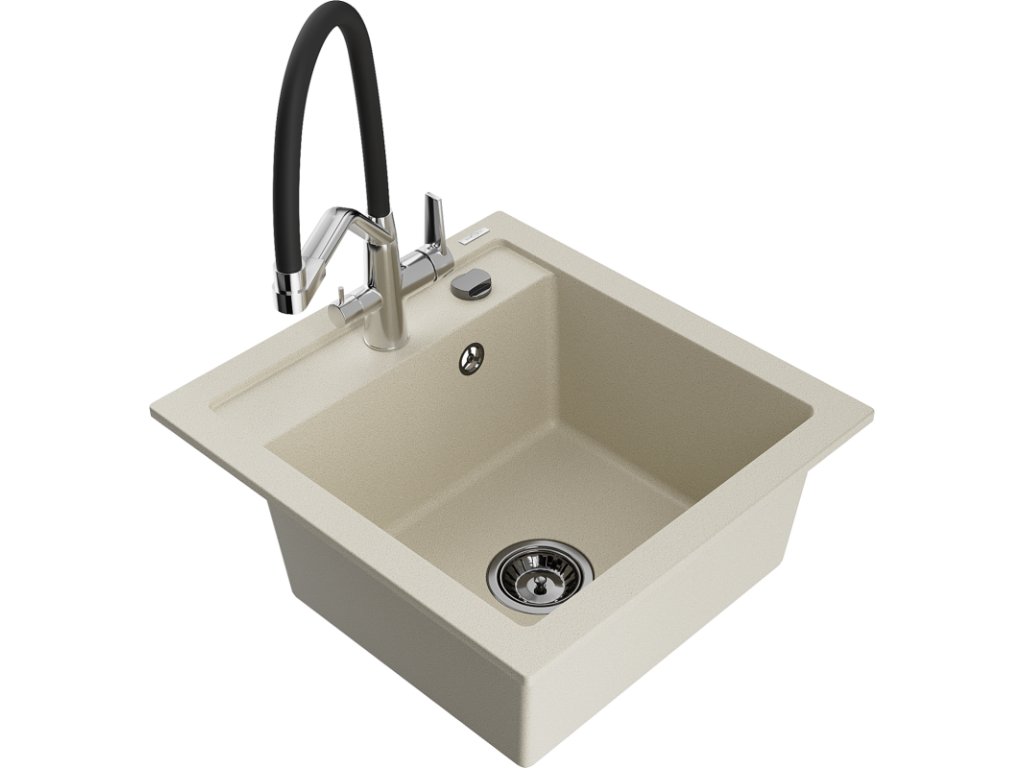 Granitový drez Mexen Vito s 1 misou a kuchynskou batériou Duo, béžový - 6503-69-671701-07-B
