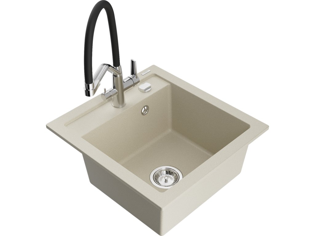 Granitový drez Mexen Vito s 1 misou a kuchynskou batériou Duo, béžový - 6503-69-671701-07
