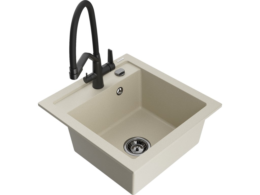 Granitový drez Mexen Vito s 1 misou a kuchynskou batériou Duo, béžový - 6503-69-671701-70-B