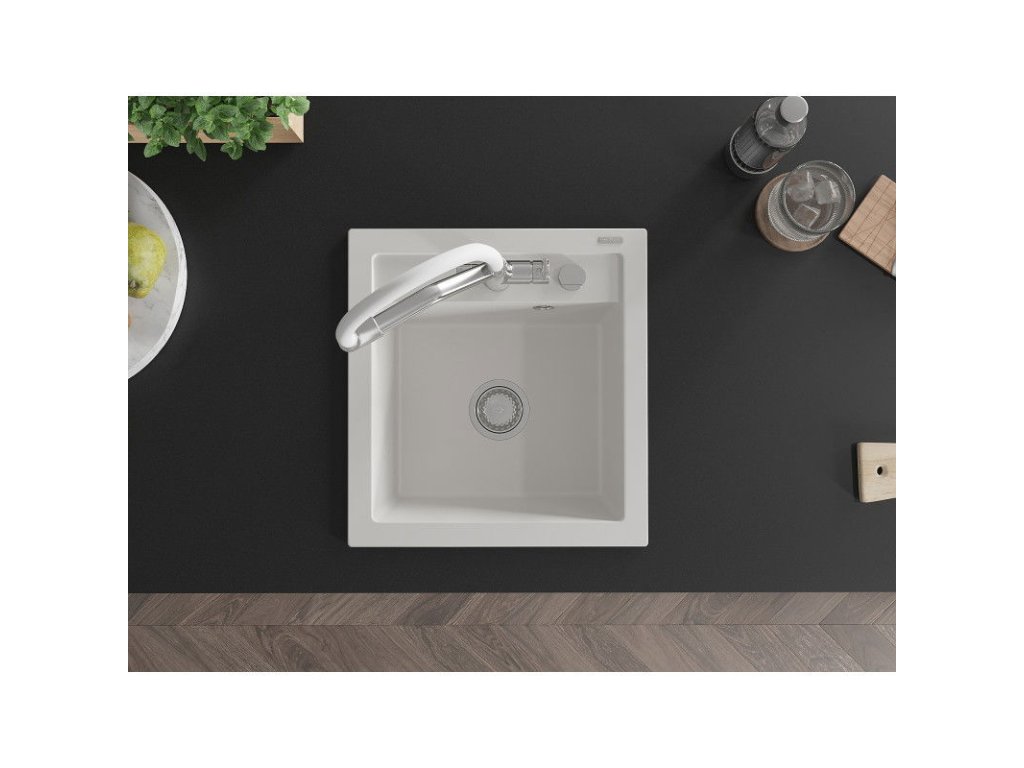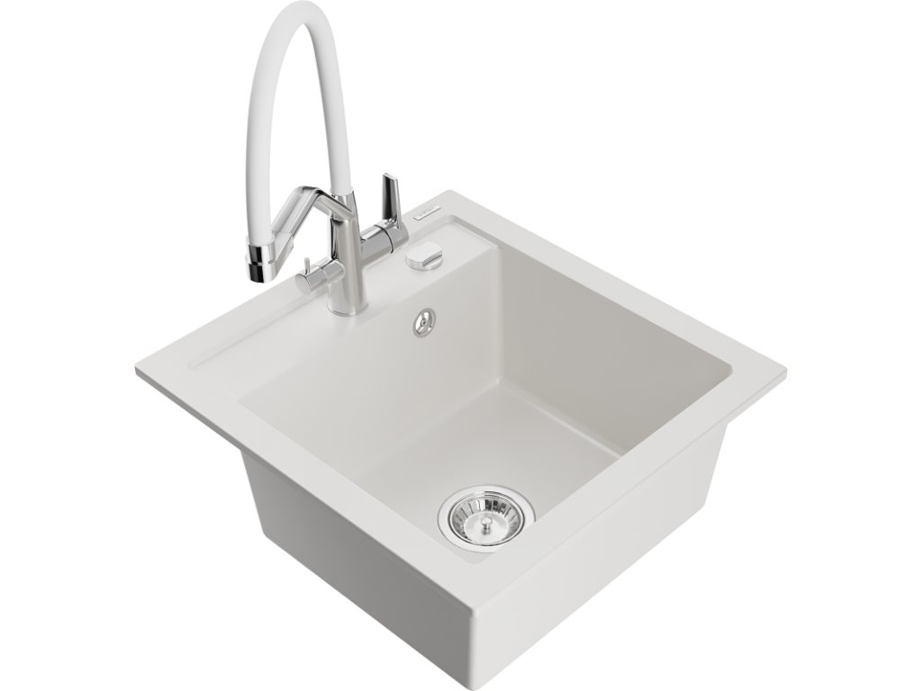 Granitový drez Mexen Vito s 1 misou a kuchynskou batériou Duo, biely - 6503-20-671701-02