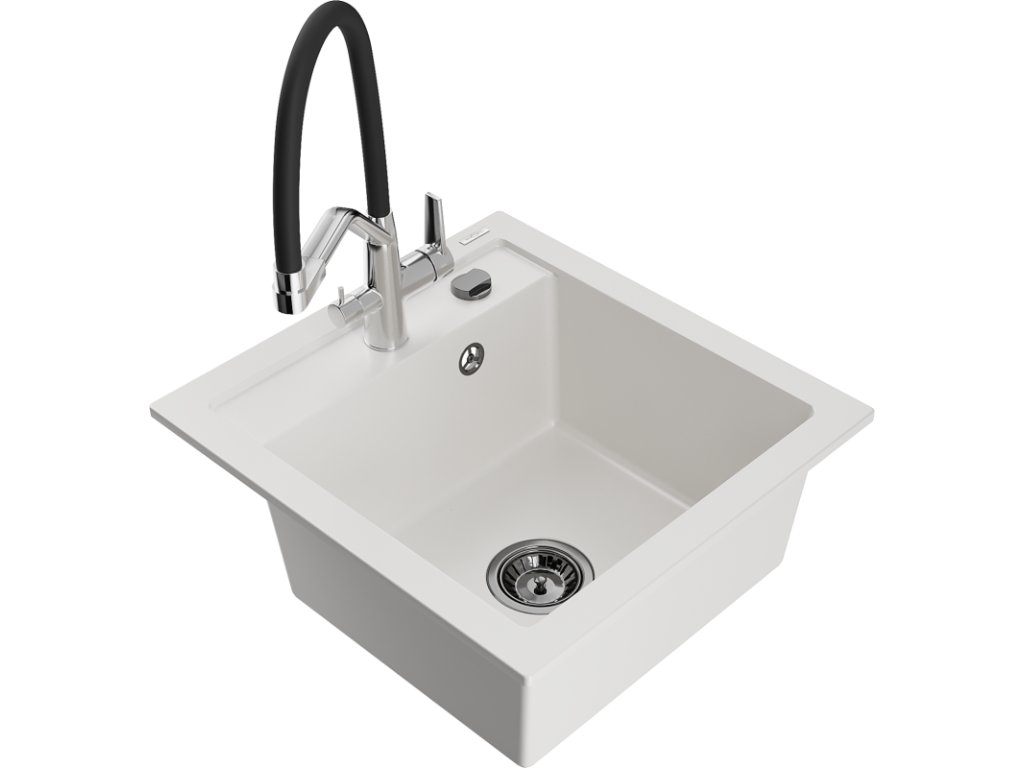 Granitový drez Mexen Vito s 1 misou a kuchynskou batériou Duo, biely - 6503-20-671701-07-B
