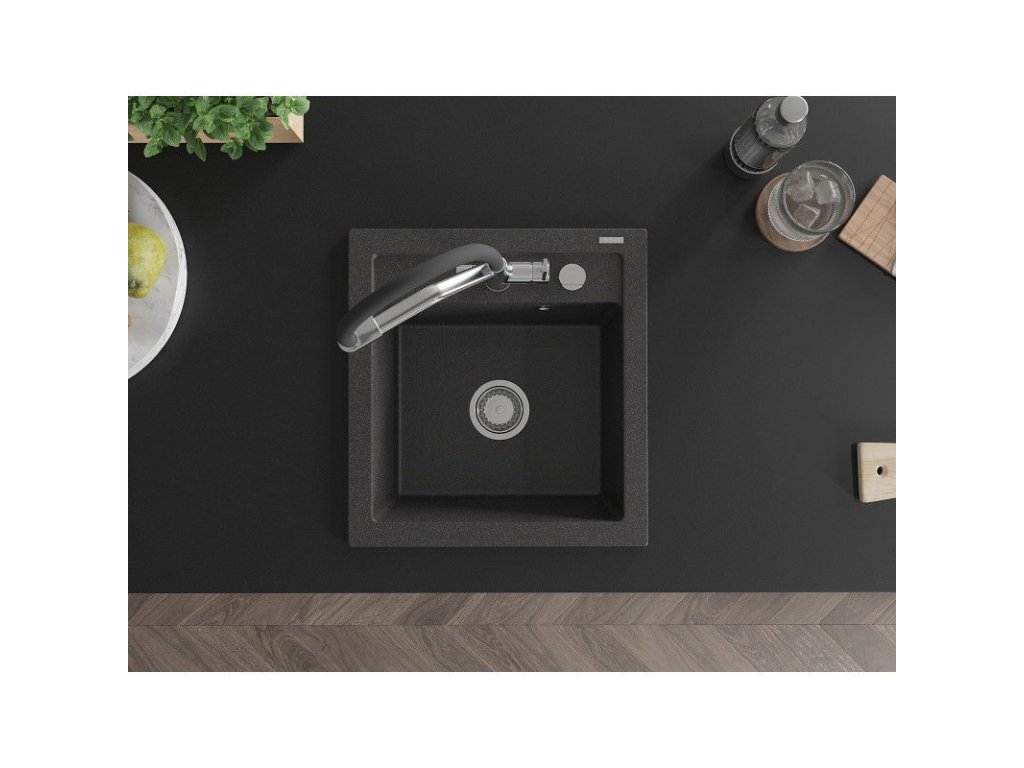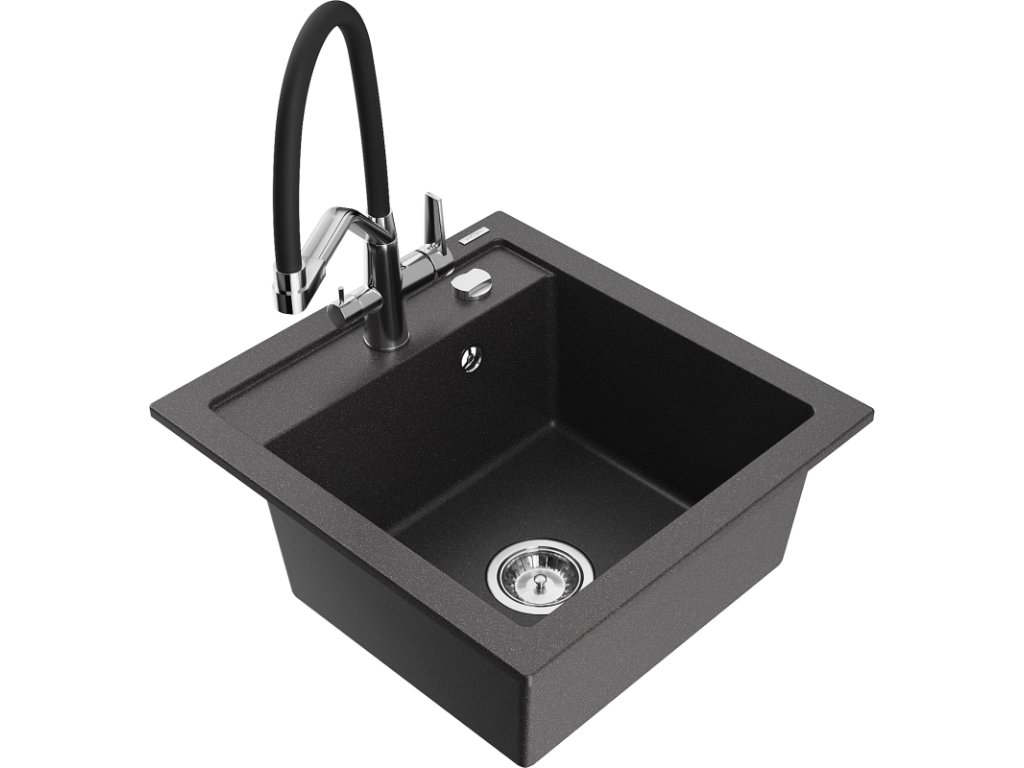 Granitový drez Mexen Vito s 1 misou a kuchynskou batériou Duo, čierna škvrnitá - 6503-76-671701-07
