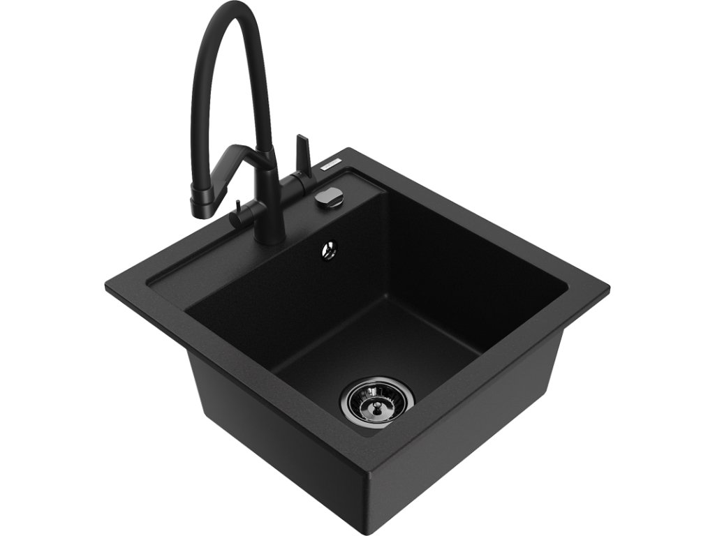 Granitový drez Mexen Vito s 1 misou a kuchynskou batériou Duo, čierny - 6503-77-671701-70-B