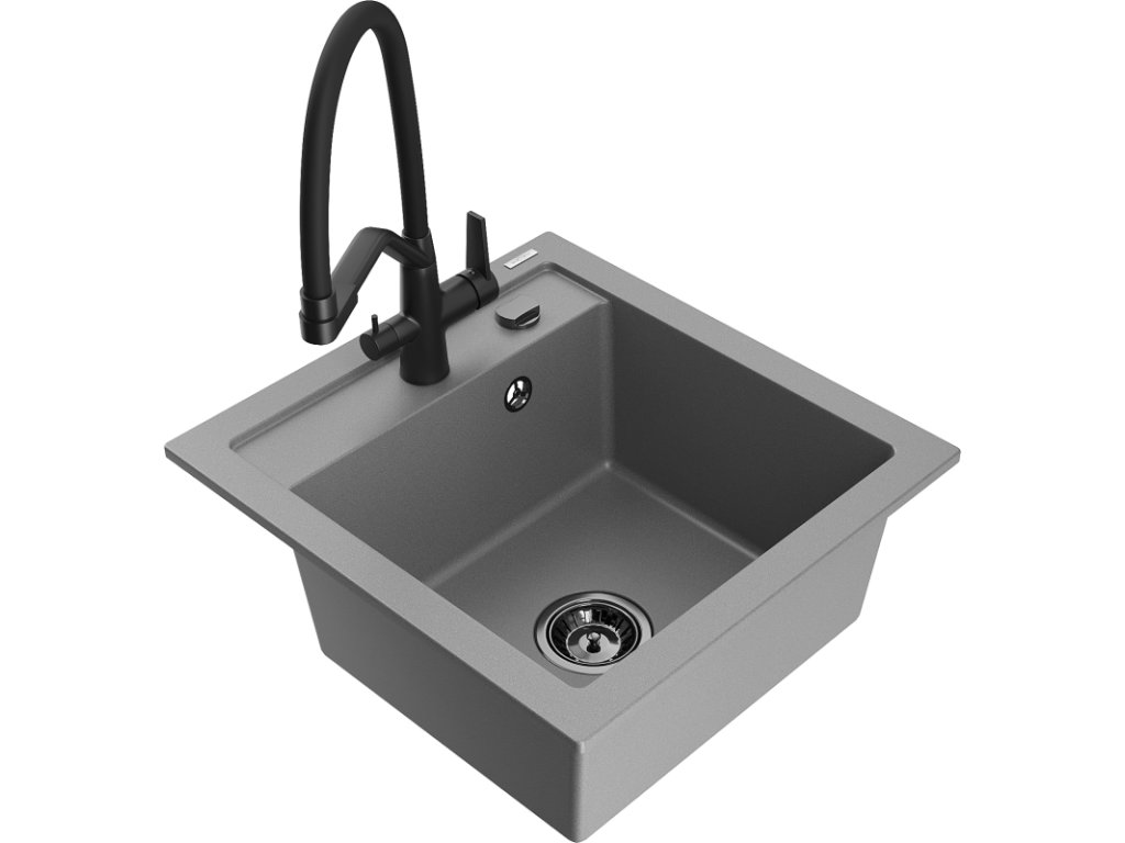 Granitový drez Mexen Vito s 1 misou a kuchynskou batériou Duo, sivý - 6503-71-671701-70-B