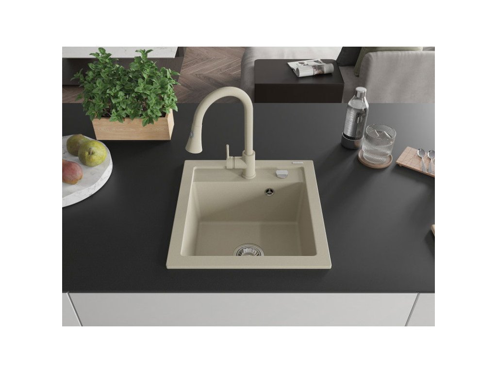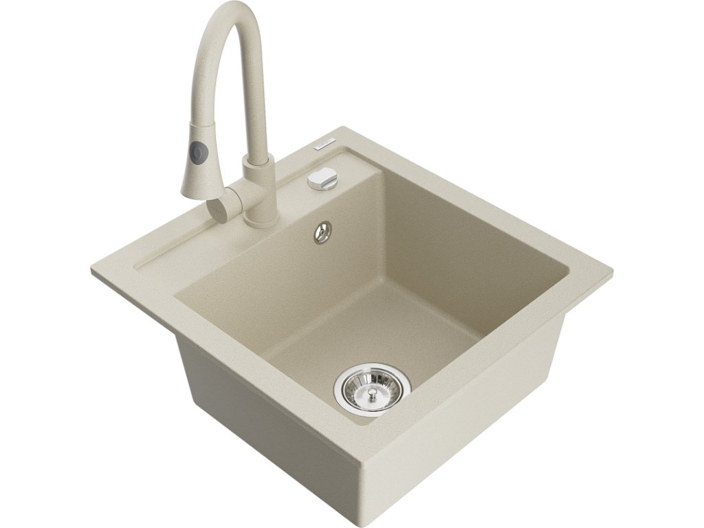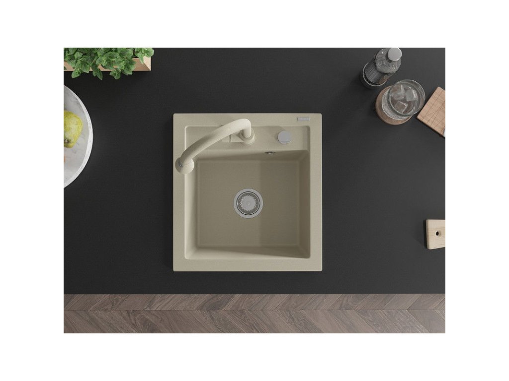 Granitový drez Mexen Vito s 1 misou a kuchynskou batériou Elia, béžový - 6503-69-670101-69