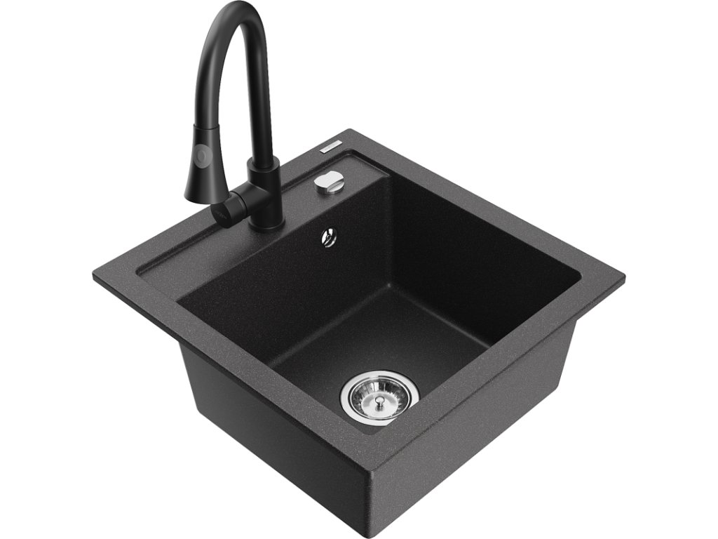 Granitový drez Mexen Vito s 1 misou a kuchynskou batériou Elia, čierna škvrnitá - 6503-76-670101-70