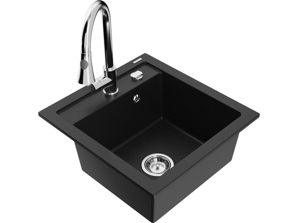 Granitový drez Mexen Vito s 1 misou a kuchynskou batériou Elia, čierny - 6503-77-670101-00