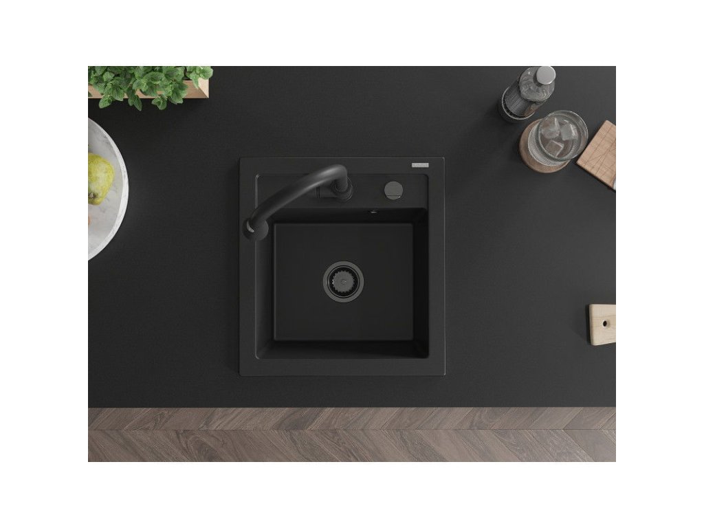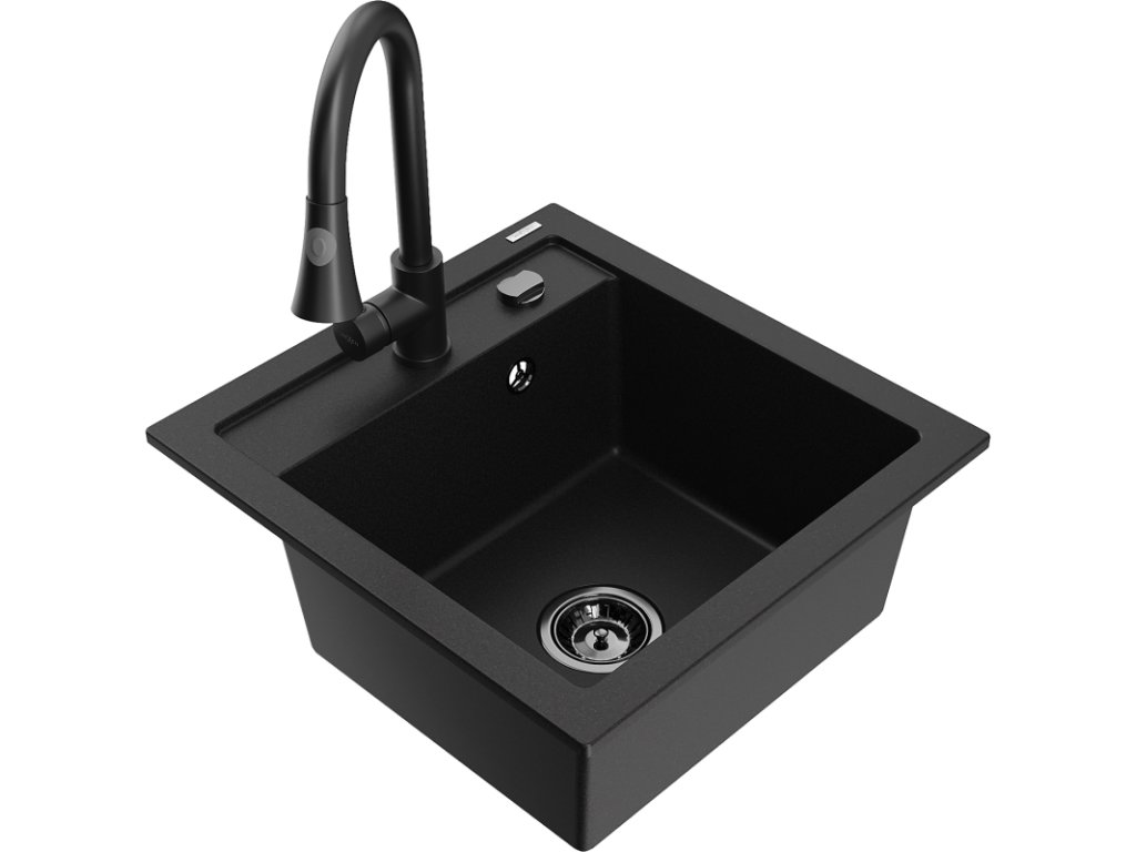 Granitový drez Mexen Vito s 1 misou a kuchynskou batériou Elia, čierny - 6503-77-670101-70-B