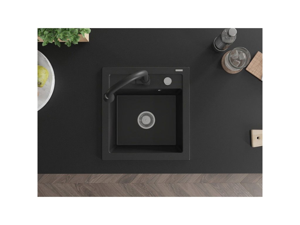 Granitový drez Mexen Vito s 1 misou a kuchynskou batériou Elia, čierny - 6503-77-670101-70