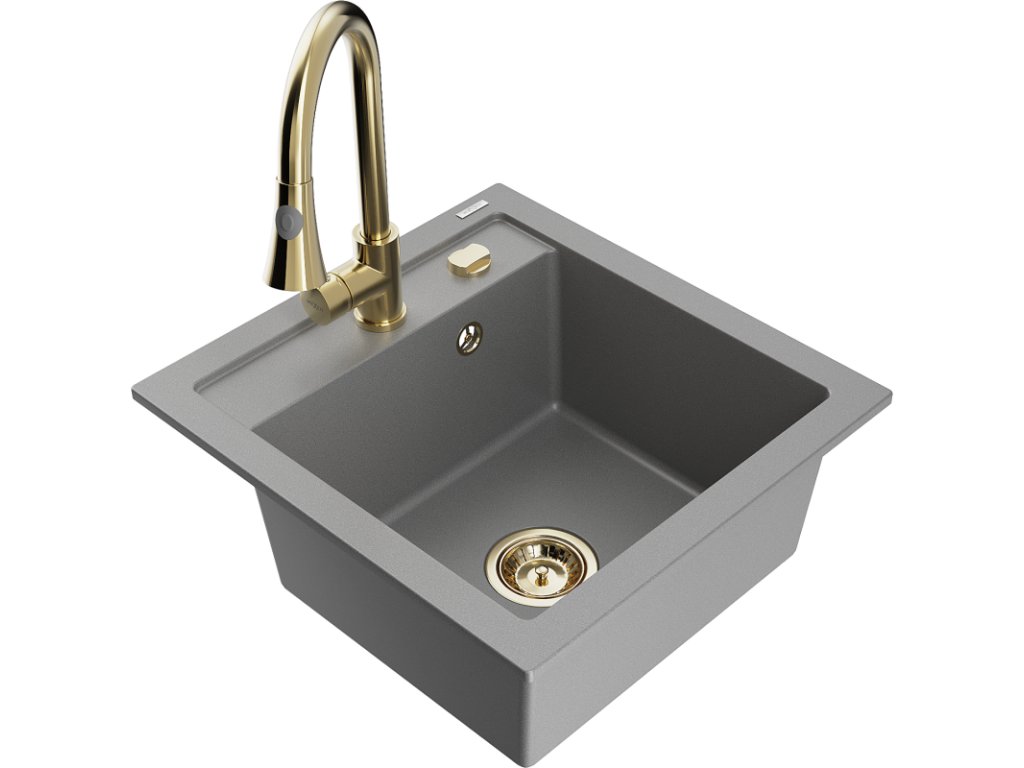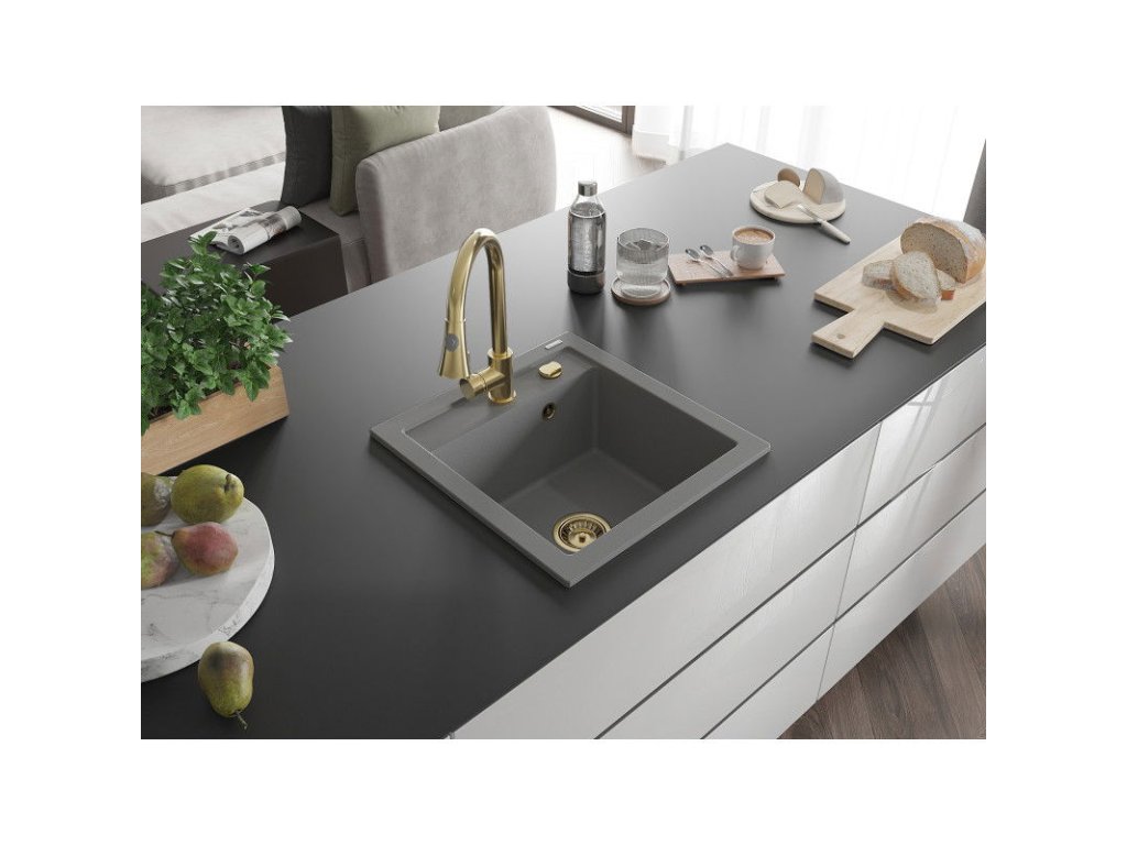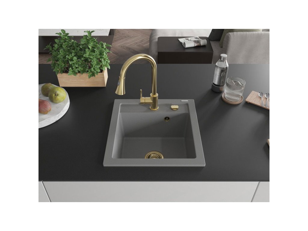 Granitový drez Mexen Vito s 1 misou a kuchynskou batériou Elia, sivý - 6503-71-670101-50