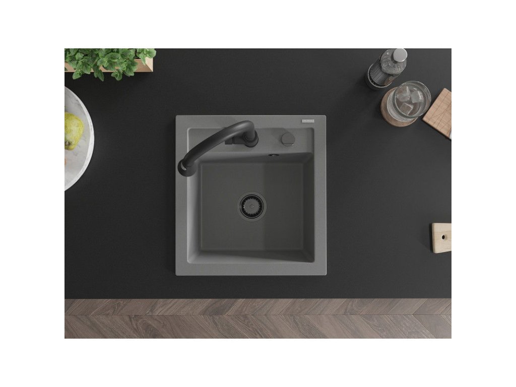 Granitový drez Mexen Vito s 1 misou a kuchynskou batériou Elia, sivý - 6503-71-670101-70-B