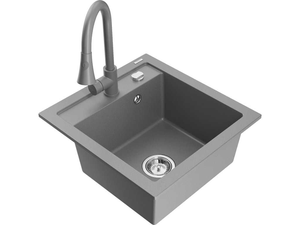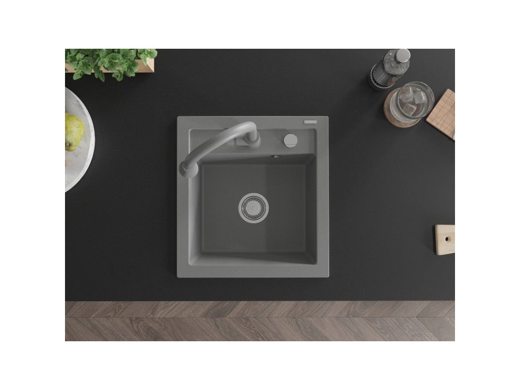Granitový drez Mexen Vito s 1 misou a kuchynskou batériou Elia, sivý - 6503-71-670101-71