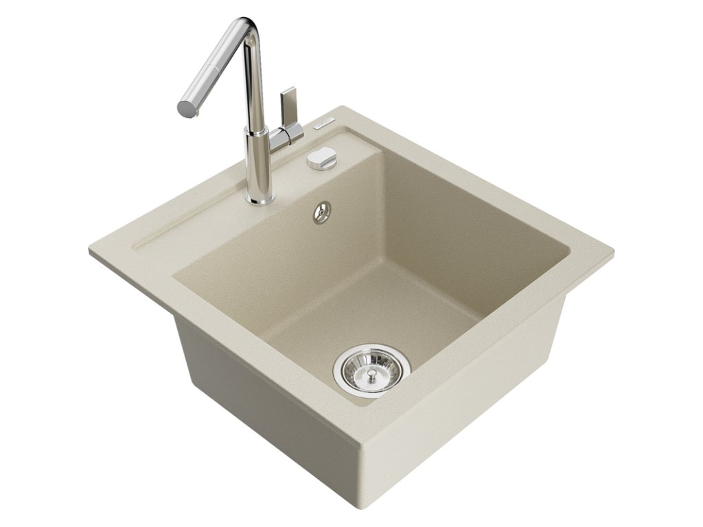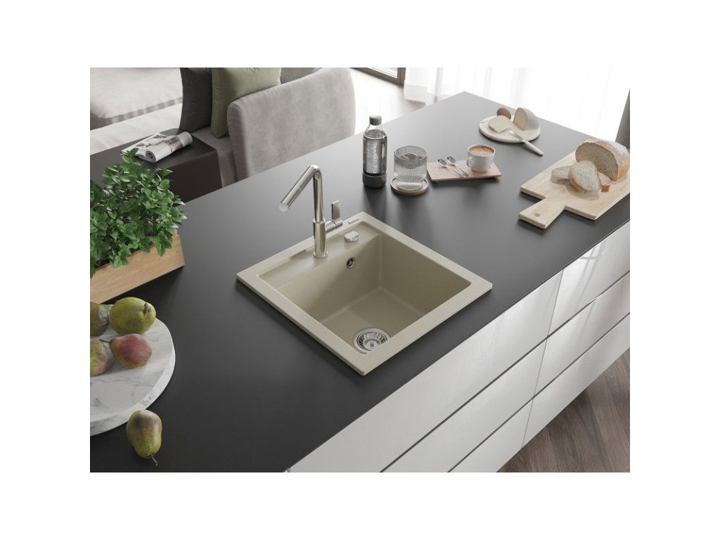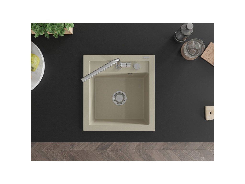 Granitový drez Mexen Vito s 1 misou a kuchynskou batériou Flora, béžový - 6503-69-670401-00