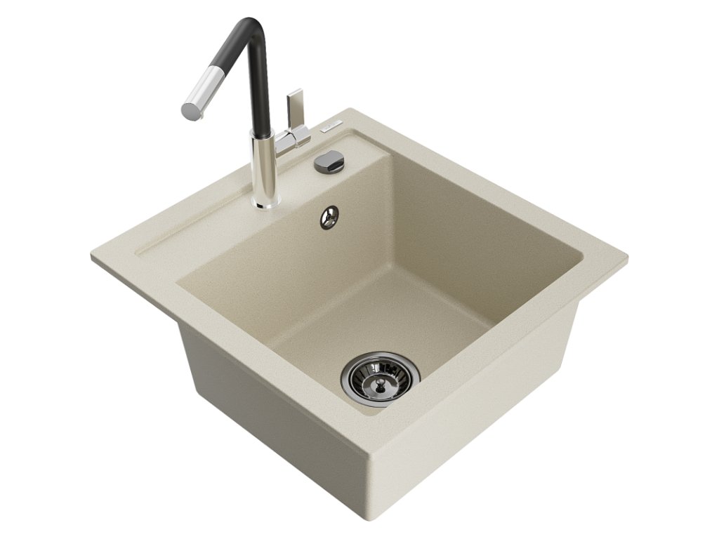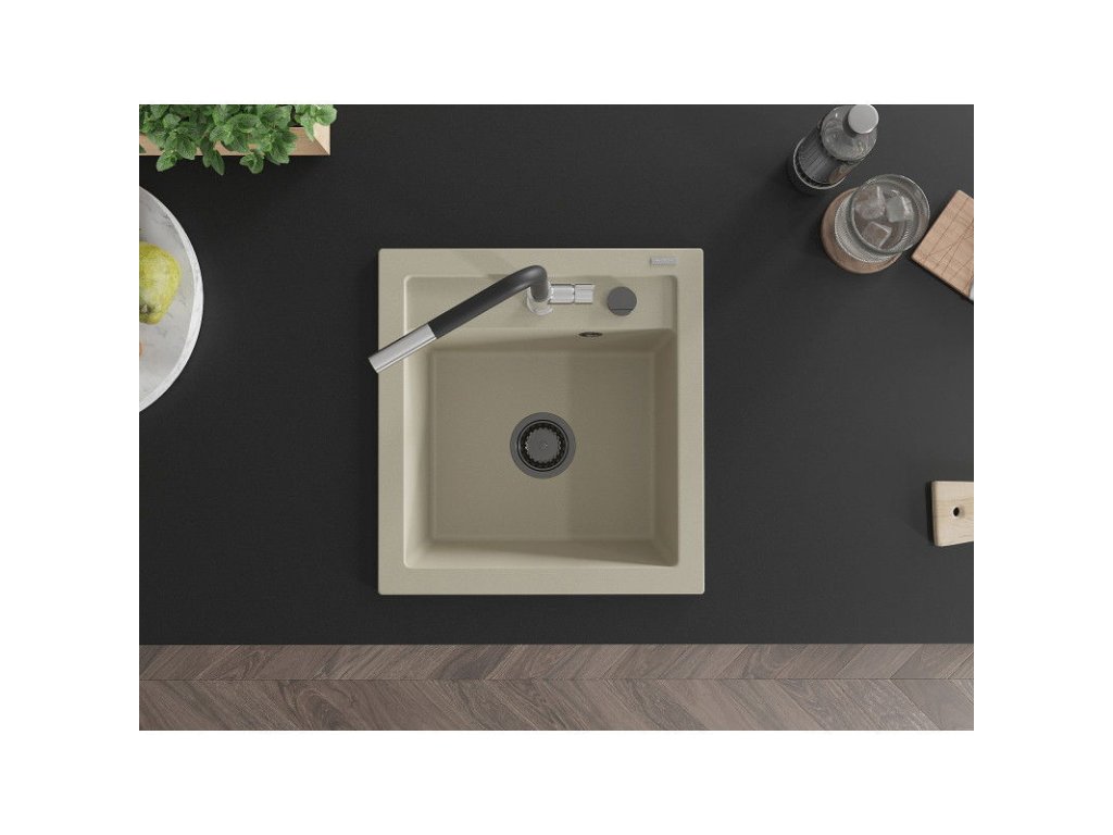 Granitový drez Mexen Vito s 1 misou a kuchynskou batériou Flora, béžový - 6503-69-670401-07-B