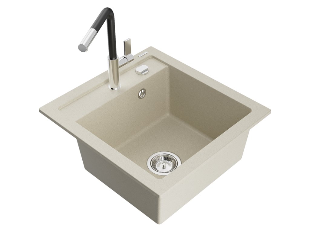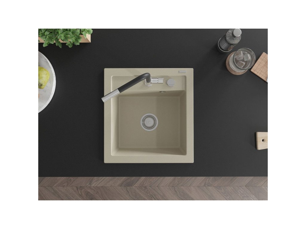 Granitový drez Mexen Vito s 1 misou a kuchynskou batériou Flora, béžový - 6503-69-670401-07