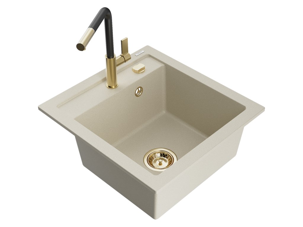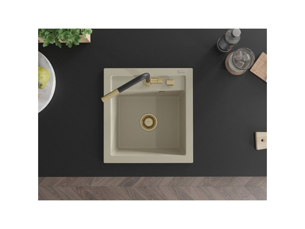 Granitový drez Mexen Vito s 1 misou a kuchynskou batériou Flora, béžový - 6503-69-670401-57-G