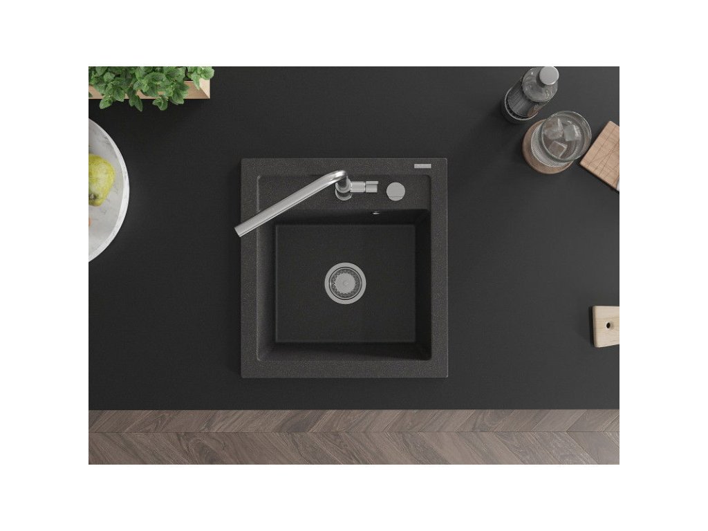 Granitový drez Mexen Vito s 1 misou a kuchynskou batériou Flora, čierna škvrnitá - 6503-76-670401-00