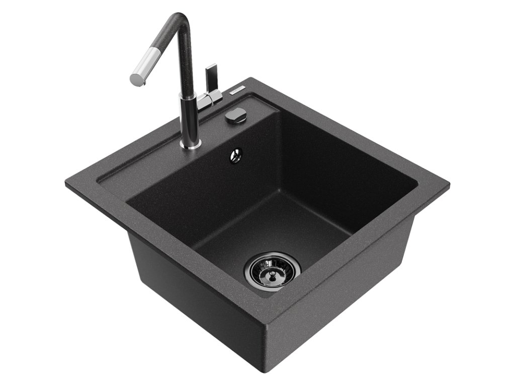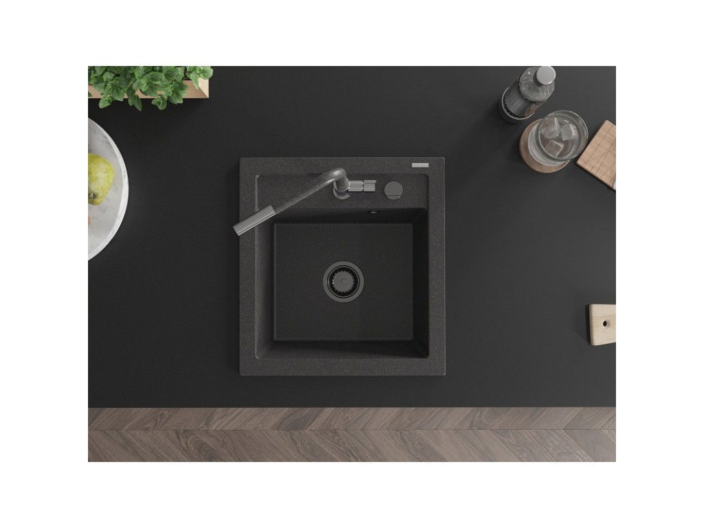 Granitový drez Mexen Vito s 1 misou a kuchynskou batériou Flora, čierna škvrnitá - 6503-76-670401-08-B