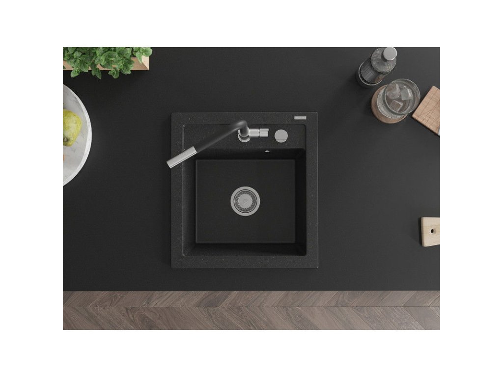 Granitový drez Mexen Vito s 1 misou a kuchynskou batériou Flora, čierna/strieborná metalíza - 6503-73-670401-07