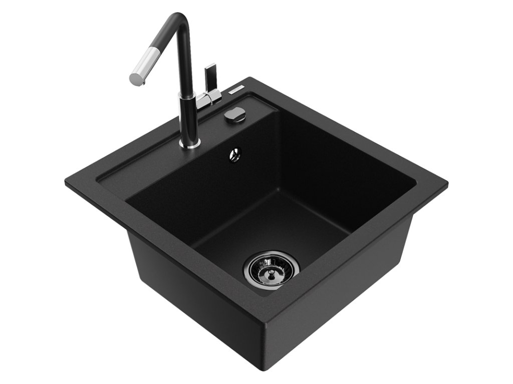 Granitový drez Mexen Vito s 1 misou a kuchynskou batériou Flora, čierny - 6503-77-670401-07-B