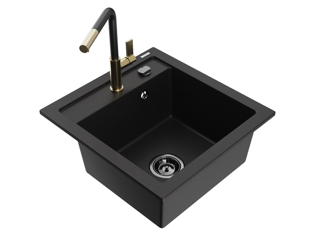 Granitový drez Mexen Vito s 1 misou a kuchynskou batériou Flora, čierny - 6503-77-670401-57-B